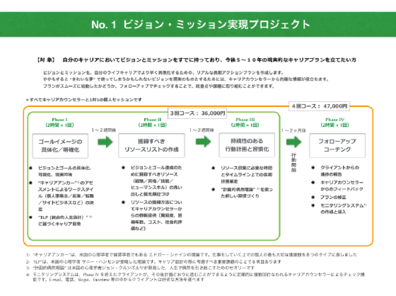 ややもすると “きれいな夢” だけで終わりがちなビジョンを現実のものとするためには、プロのキャリアカウンセラーからの的確なアドバイスと情報が不可欠です。