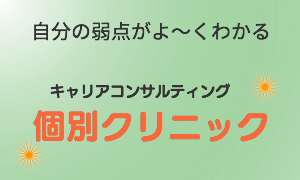 | キャリアコンサルティング個別クリニック すっかり有名になった「ビデオ撮り→すぐ再生→一箇所、一箇所でとめて具体的なフィードバックと修正の提案→再チャレンジ」の指導法。ここまで丁寧で、わかりやすいのはキャリアスタジオだけ。 |
